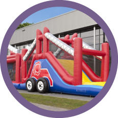 Toller Hindernisparcours in Feuerwehr Optik. Hier können die Kinder nicht nur Hüpfen sondern müssen