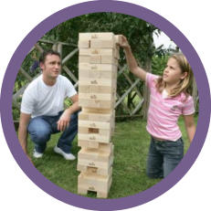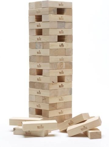 Taktisches Spiel - jeder Spieler entfernt die Holzblöcke und legt sie oben auf dem Turm, um den Turm so