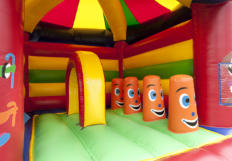 Die Hüpfburg Karussell ist durch die bunte Farbkombination ein wahrer Blickfänger. Rot, Blau, Gelb und